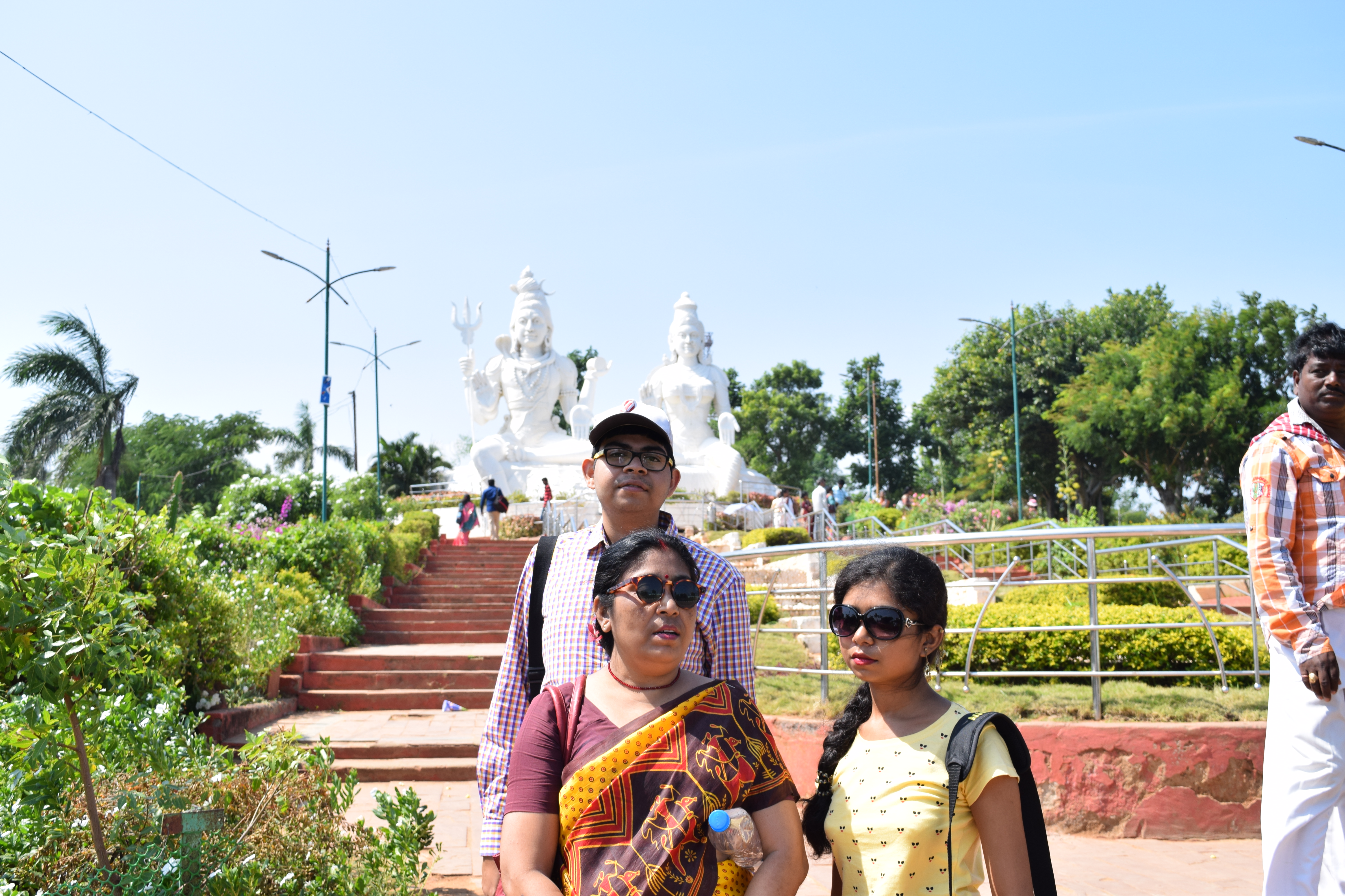 Next day we hired a car for sightseeing. We reached famous Simachalam temple at the top of Simachalam hill. It is the temple of Lord Vishnu ( Narashima). One can find a man-lion incarnation of Lord Vishnu. We offered Puja. The environment is very good—hills covered with green trees. We left this hill for city. We reached another hill ‘Kailash Giri’. A large statue of Lord Shiva and Parbati is on the top of the hill. The natural scenario of the Vishakapatnam ,surrounded by sea is beautiful from this spot. We left this place by the car for Rishikonda beach. It is a natural beach—silent with no crowd, no house. We saw the beautiful waves of the sea touching the sands of the beach. But in our recent visit, we observed a vast change of the beach—many hotels near the beach and crowds at the beach.